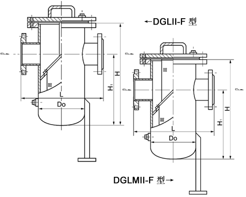 6、蓝式法兰连接高低接管平底式过滤器(DGLIII-F型)